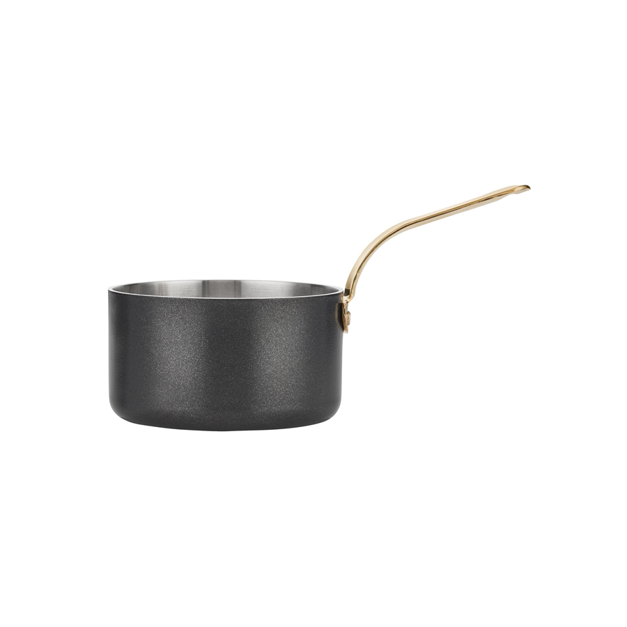 Mini Round, Casserole Pan 2-Ply (430 / Aluminium) Brass Handle, AG2 Alloy Rivet Flat Bottom Black Non-Stick 2 Coats Satin Polished