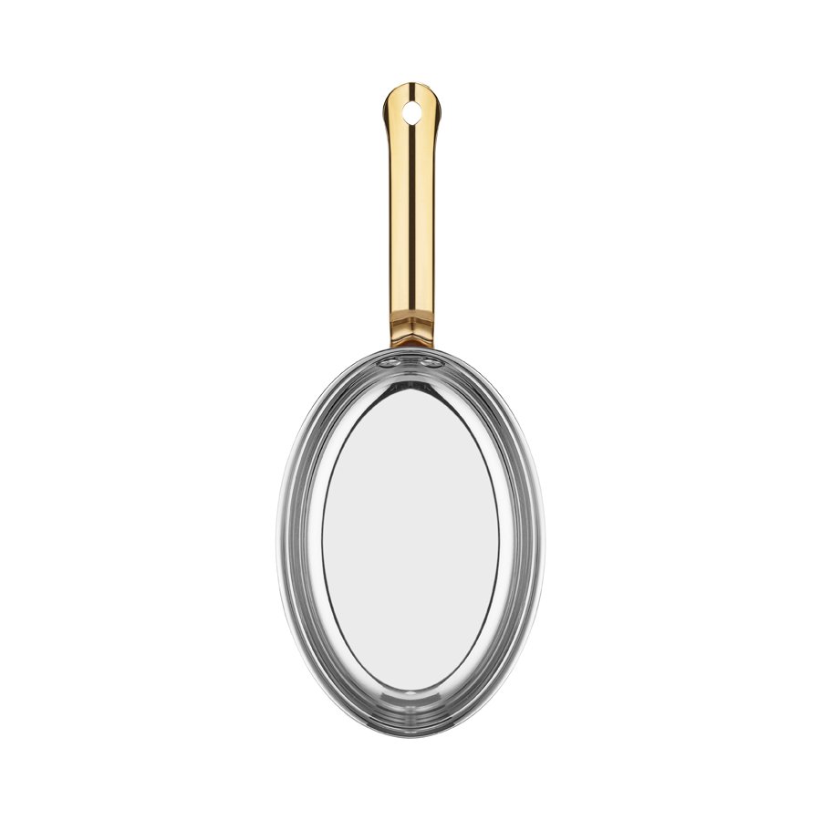 Mini Oval, Tava 3 Katman (Bakır / Alüm / 304) Pirinç Sap, AG2 Alaşım Perçin Düz Taban Ayna Parlatma Satina Parlatma
